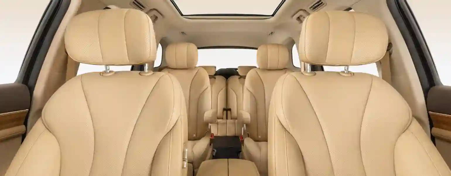 Внутри — 5 или 6 посадочных мест, в зависимости от комплектации салона. Можно выбрать свой цвет интерьера под ваш стиль жизни: черный, темно- или светло-бежевый.